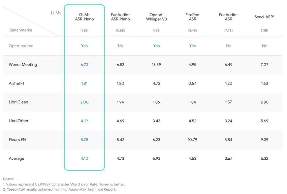 与此同期,智谱这次还开源了1.5B参数目的端侧模子GLM-ASR-Nano-2512,重心面向腹地低蔓延与秘密场景,在部分公开测试集上达到开源SOTA发扬。