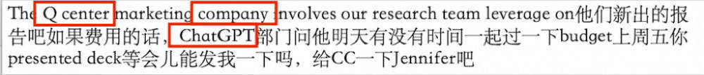 在更为复杂的一轮测试中,我班师白话输入了一整段中英文混合的责任同样内容:“这次Q3的marketing campaign involves our research team,leverage on他们新出的诠释吧,然后用度的话charge Joanna部门,问一下他翌日有没偶而代一谈过一下budget,上周五你present的deck等会不错发我一下吗?也cc一下Jennifer吧。”
